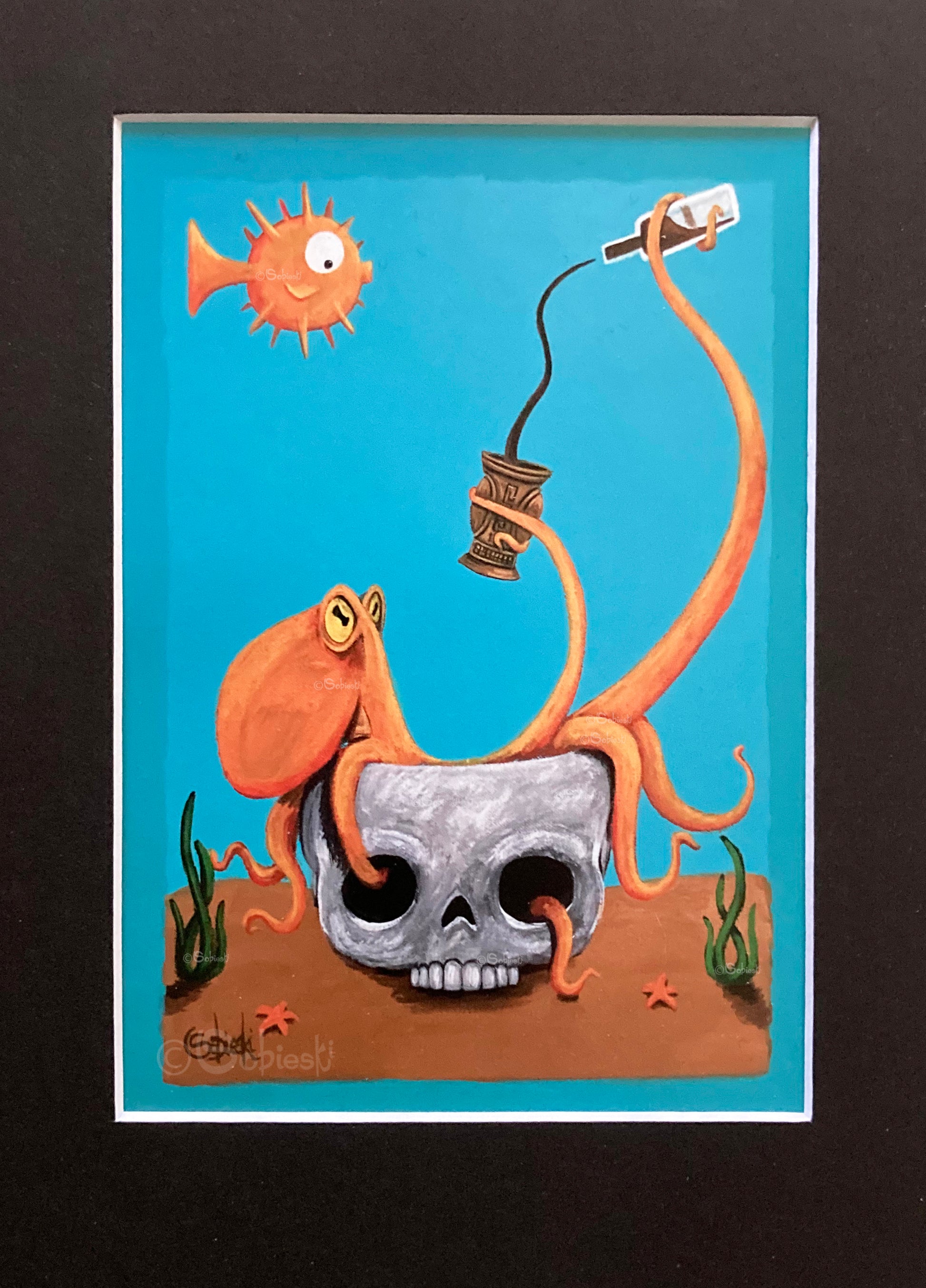 The image itself is 4.6x6.6" and is printed on Moab lasal (exhibition luster 300) paper with a Canon Pro-300.  It comes in a black 8" x 10" mat with an image opening of 4.5" x 6.5" making it ready to go into your favourite frame. The signature in the lower corner is from the painting itself. Additionally it is titled, catalogued, signed, and dated on the reverse.