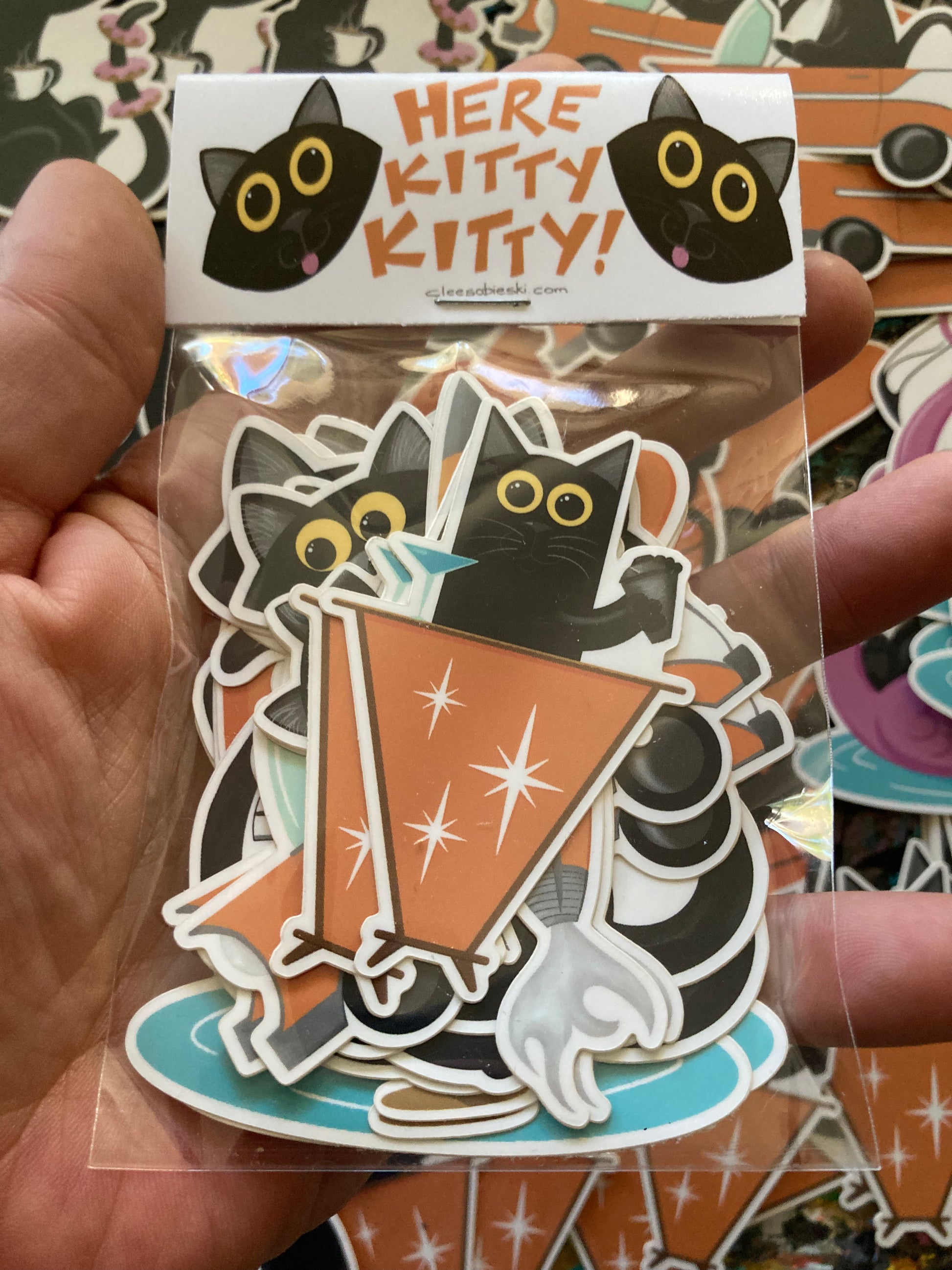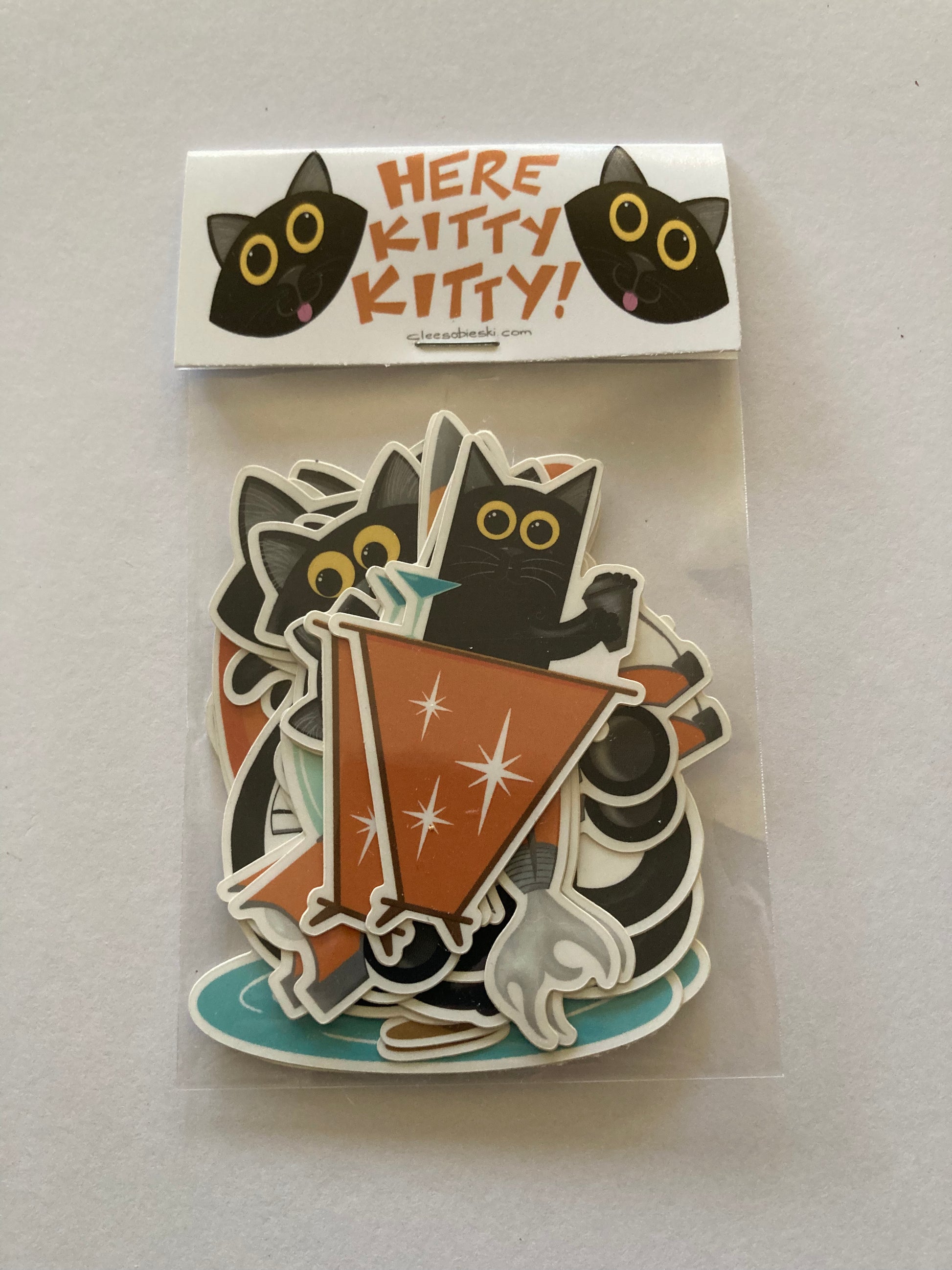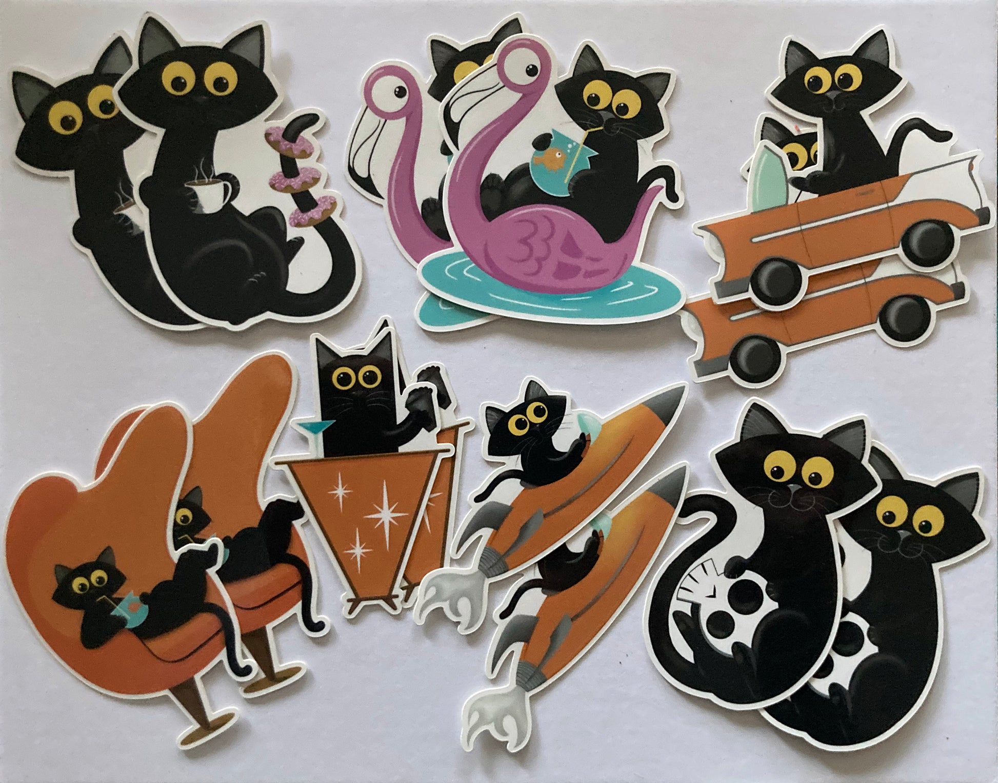 2 each of 7 different, fun, black kitty cat stickers in one awesome pack! 14 stickers total!