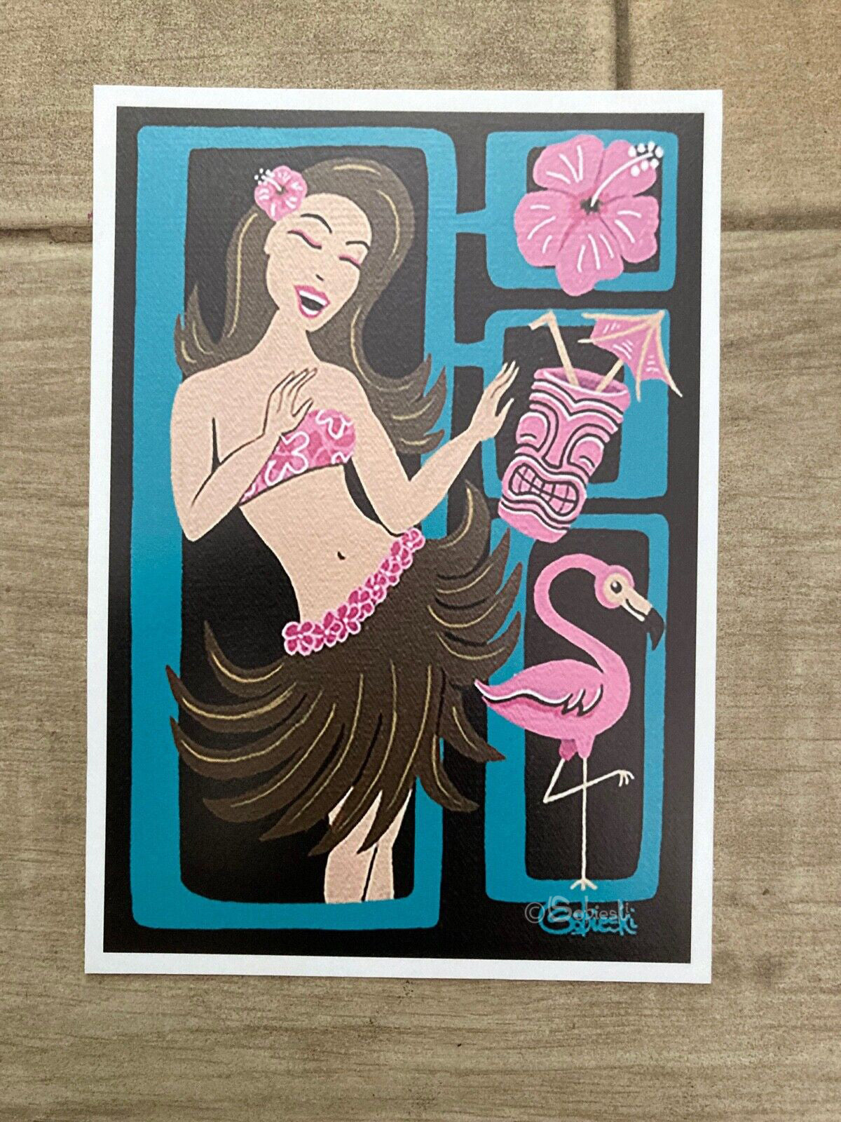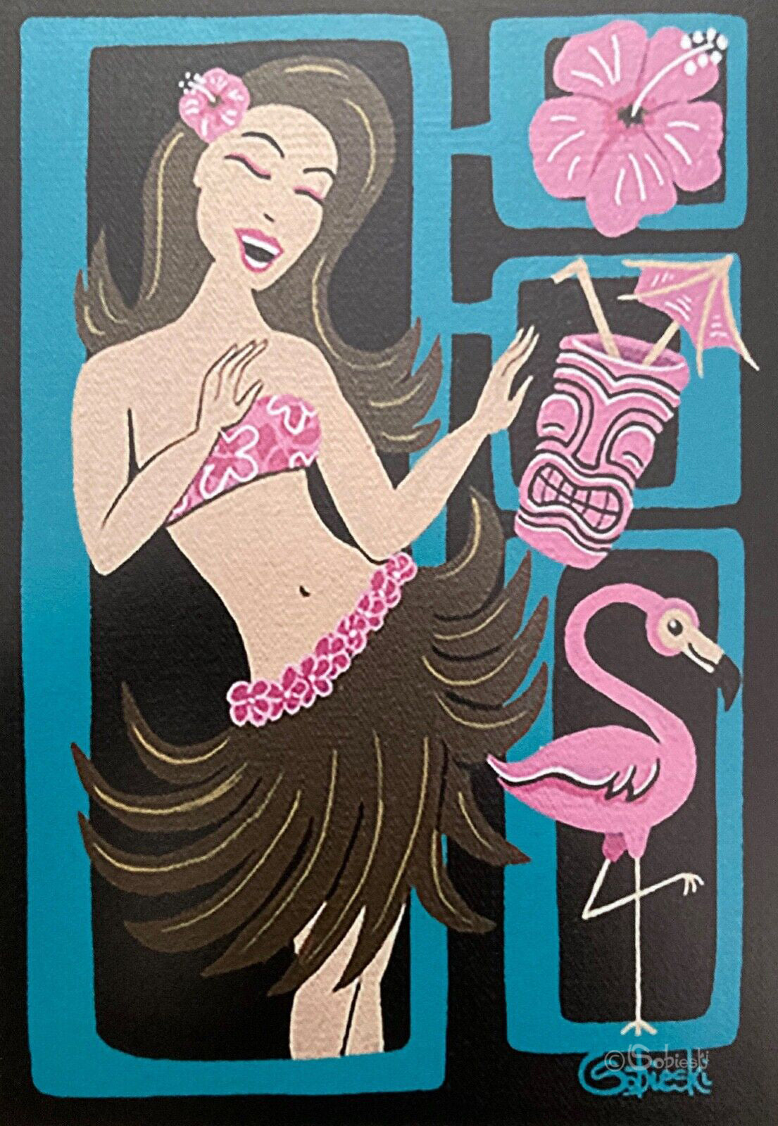 **Special Note: Colour may vary depending on your monitor or viewing device.  The colours of this print are teal, magentas, light flesh tones, white, and black.