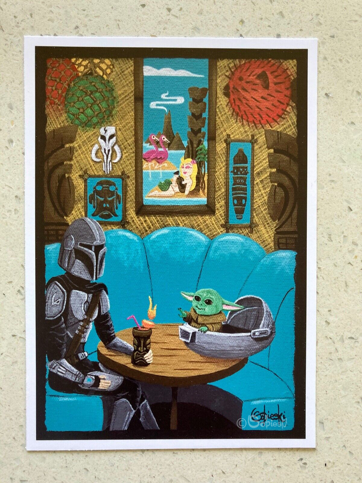 The first picture is the image of the original painting from which this print was produced. The second image is a close-up example of the print you will receive in the mat.  The third picture is an example of the print you will receive in the mat.  The fourth picture is an example of the print you will receive.