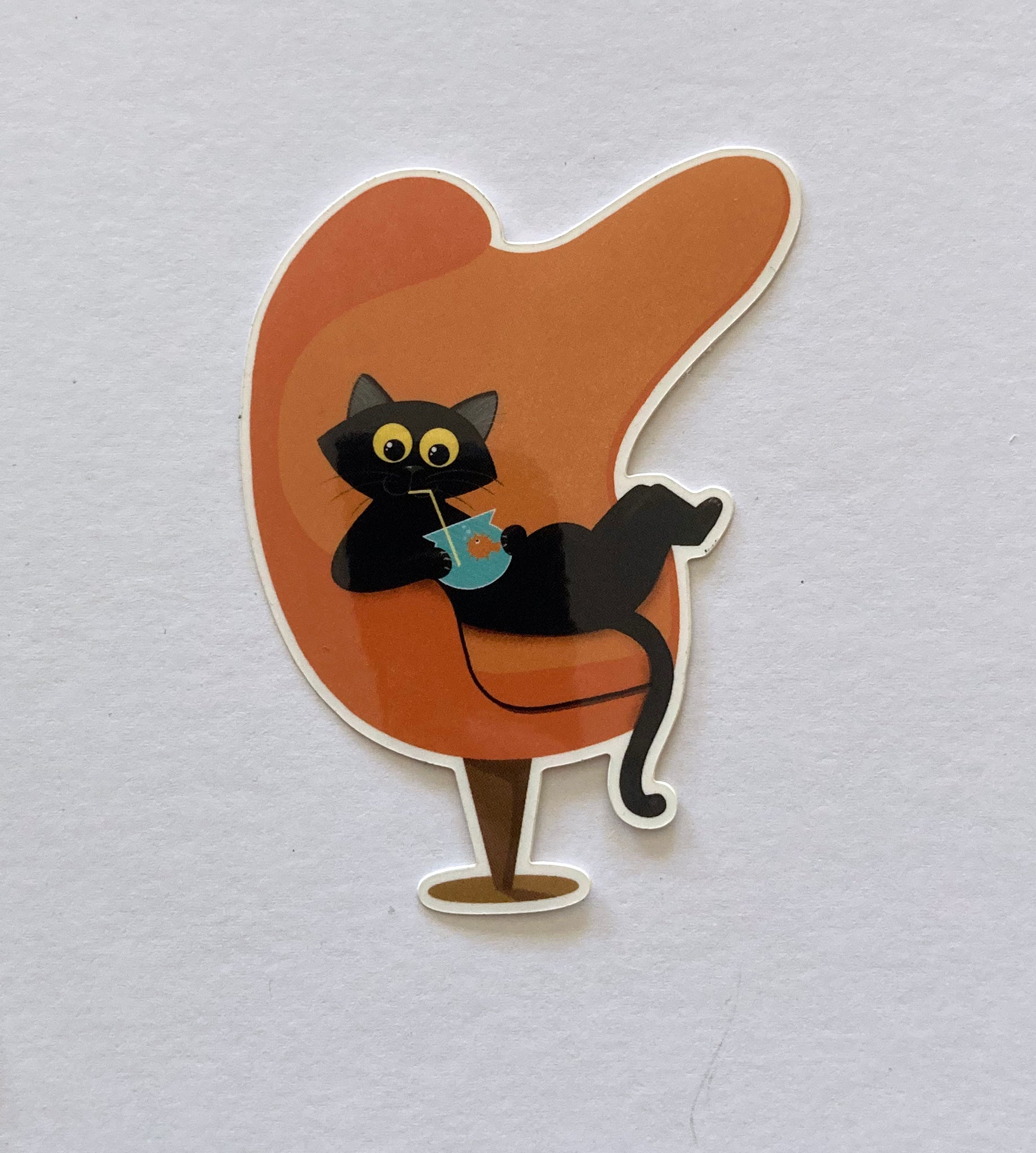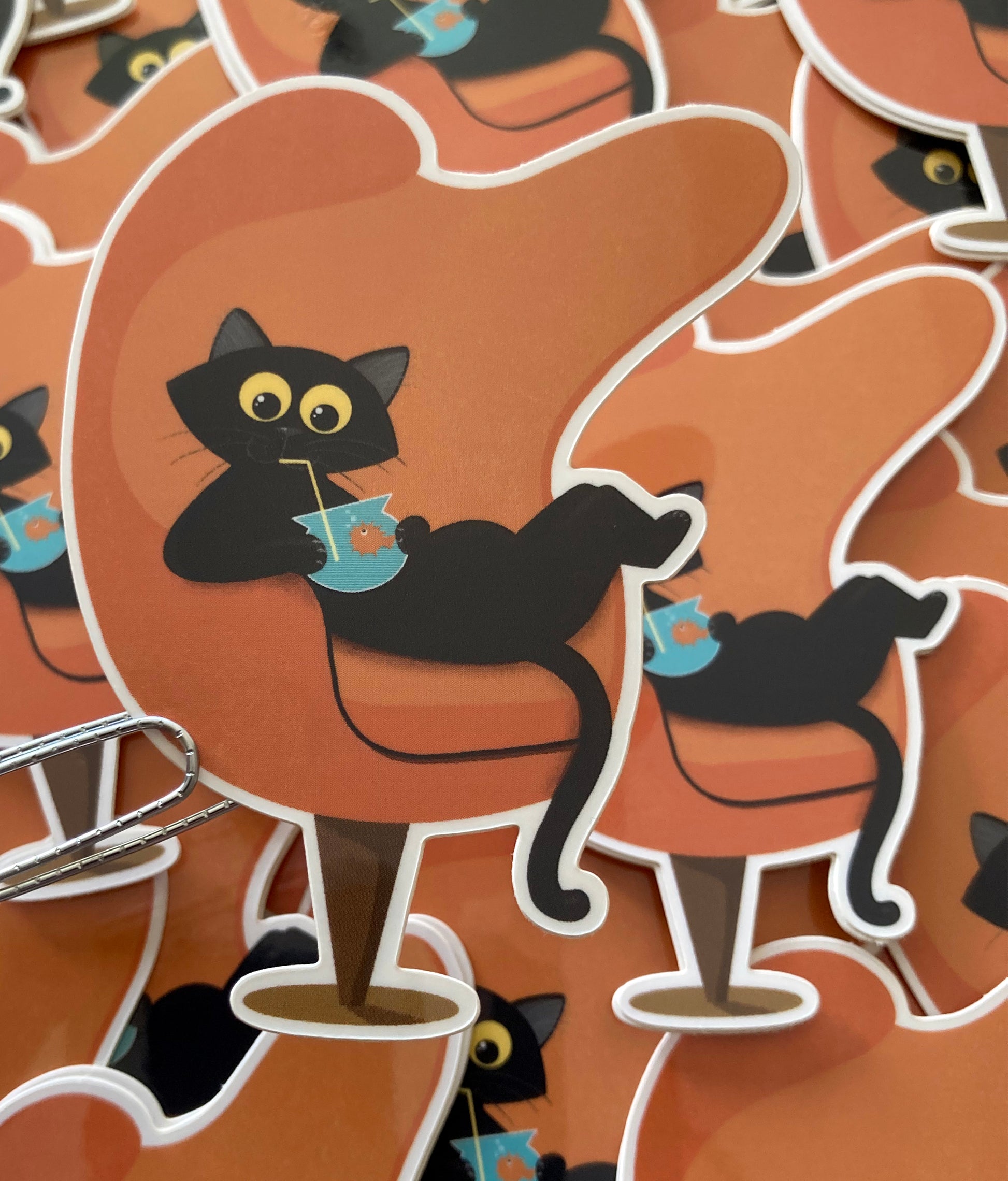 It's always 5 o'clock accordin' to this lil' fella. Just one from my collection of black kitty stickers. Available individually or part of my Here Kitty Kitty Sticker Pack while supplies last.