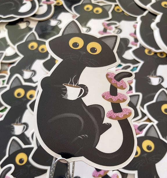 This lil' fella love playin' with the creepiest of toys. Just one from my collection of black kitty stickers. Available individually or part of my Here Kitty Kitty Sticker Pack while supplies last.