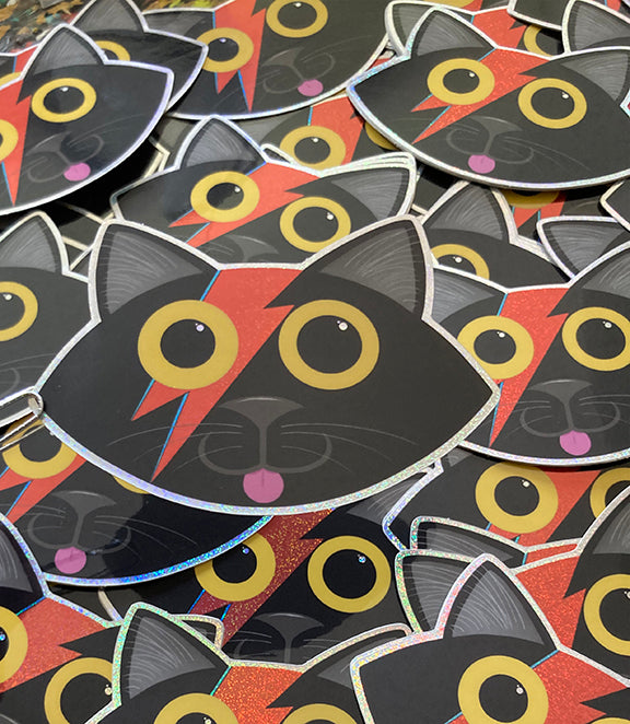 Kitty played guitar. Just one from my collection of black kitty stickers. Only available individually.