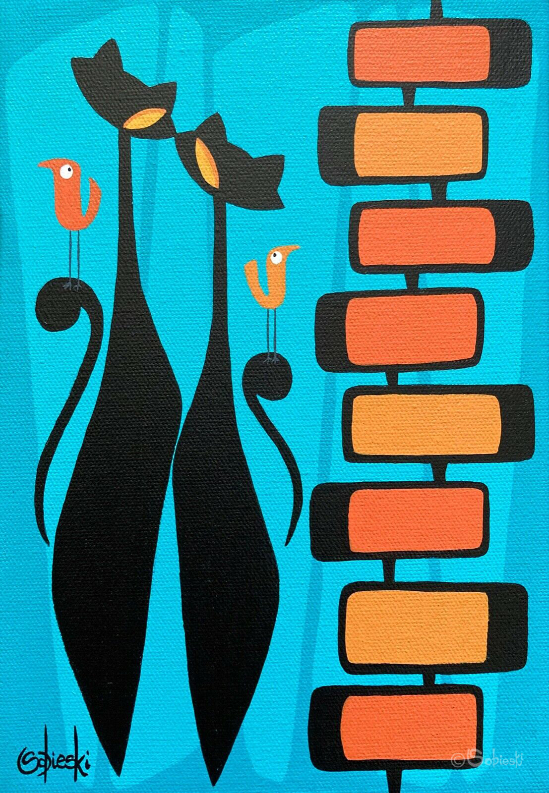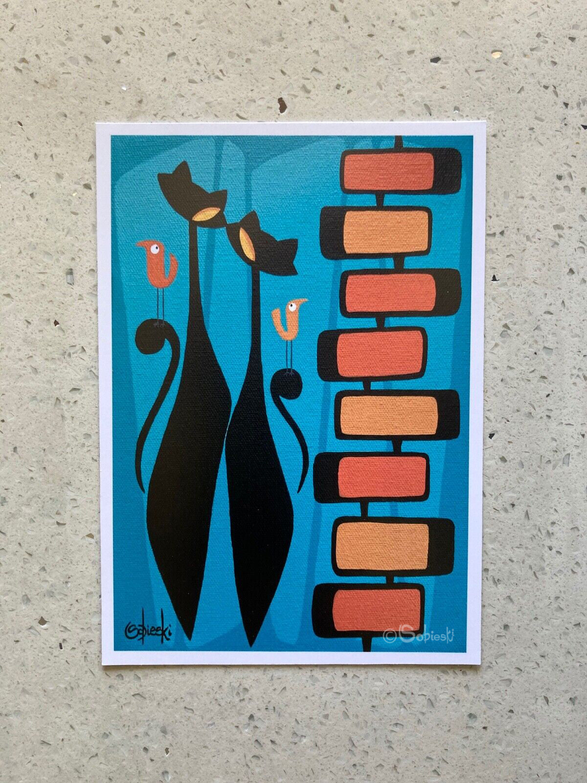 **Special Note: Colour may vary depending on your monitor or viewing device.  The colours of this print are teals, oranges, yellows, and black.