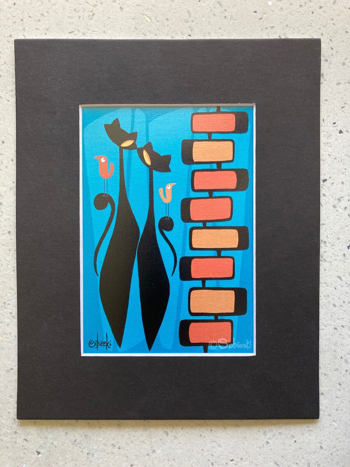 The image itself is 4.5x6.5" and is printed on Moab lasal (exhibition luster 300) paper with an Epson printer (Stylus Pro 3880) using Ultrachrome K3 inks.  It comes in a black 8" x 10" mat with an image opening of 4.5" x 6.5" making it ready to go into your favourite frame. The signature in the lower corner is from the painting itself. Additionally it is titled, catalogued, signed, and dated on the reverse.
