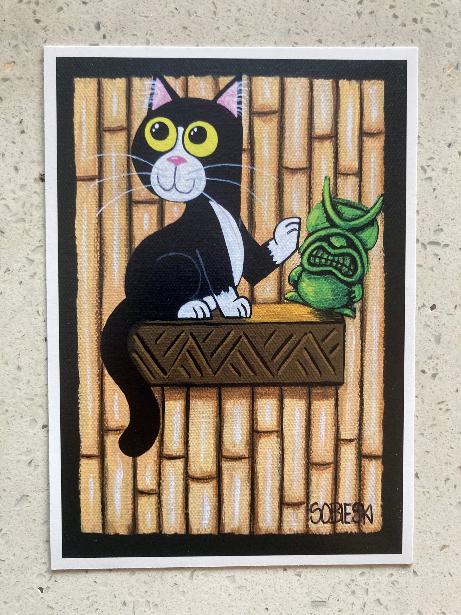 The image itself is 4.65x6.65" and is printed on Canon Pro Photo Luster Paper with a Canon Pro-300 printer.  It comes in a black 8" x 10" mat with an image opening of 4.5" x 6.5" making it ready to go into your favourite frame. The signature in the lower corner is from the painting itself. Additionally it is titled, catalogued, signed, and dated on the reverse.