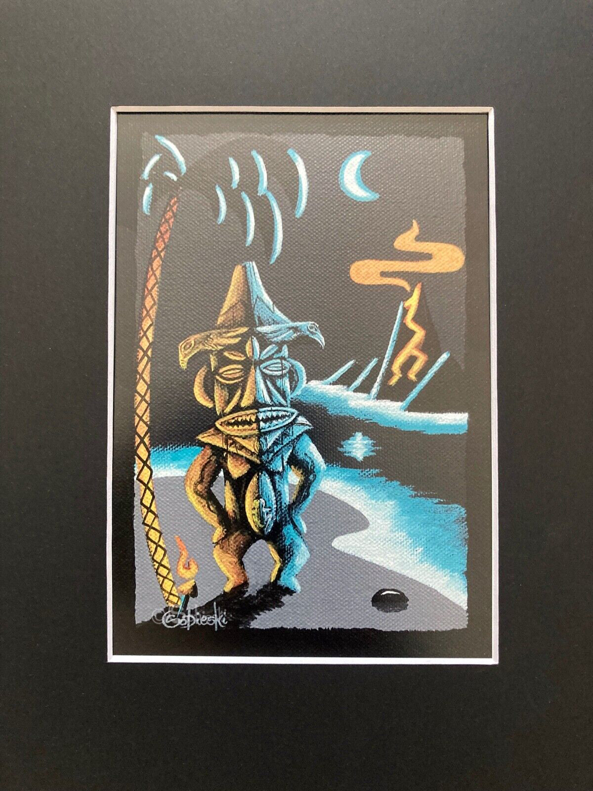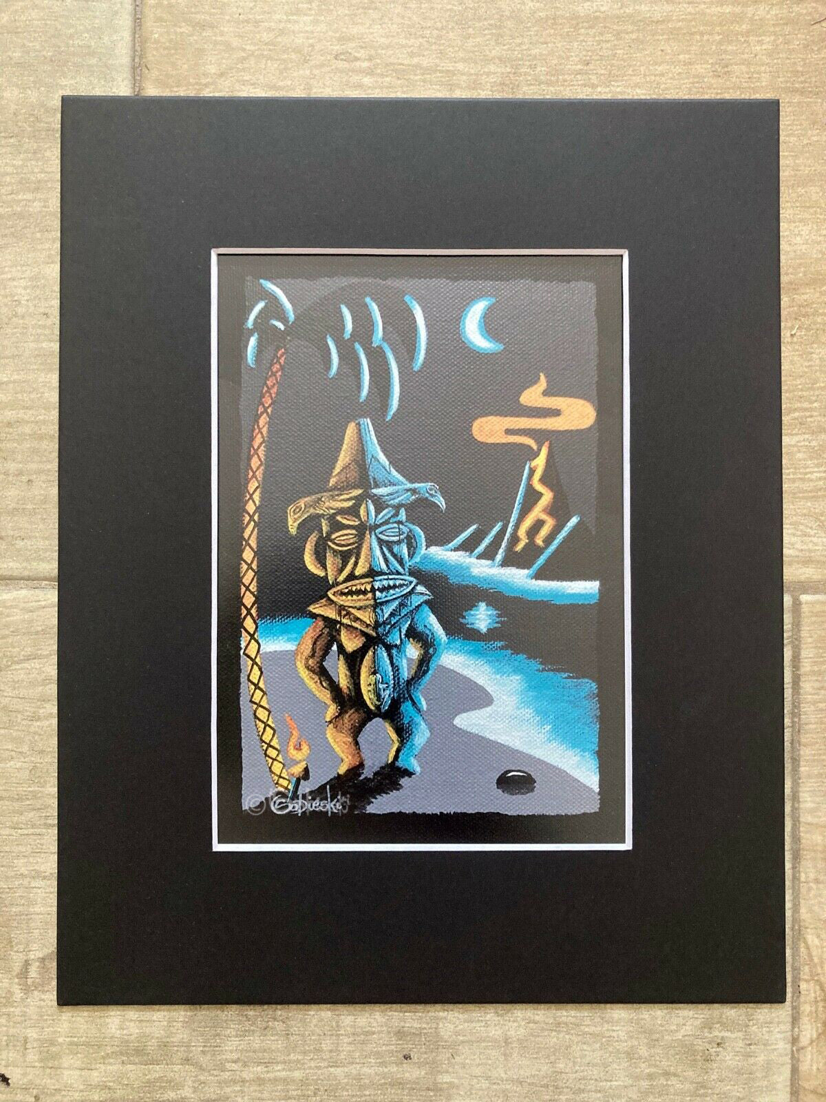 The image itself is 4.5x6.5" and is printed on Moab lasal (exhibition luster 300) paper with an Epson printer (Stylus Pro 3880) using Ultrachrome K3 inks.  It comes in a black 8" x 10" mat with an image opening of 4.5" x 6.5" making it ready to go into your favourite frame. The signature in the lower corner is from the painting itself. Additionally it is titled, catalogued, signed, and dated on the reverse.
