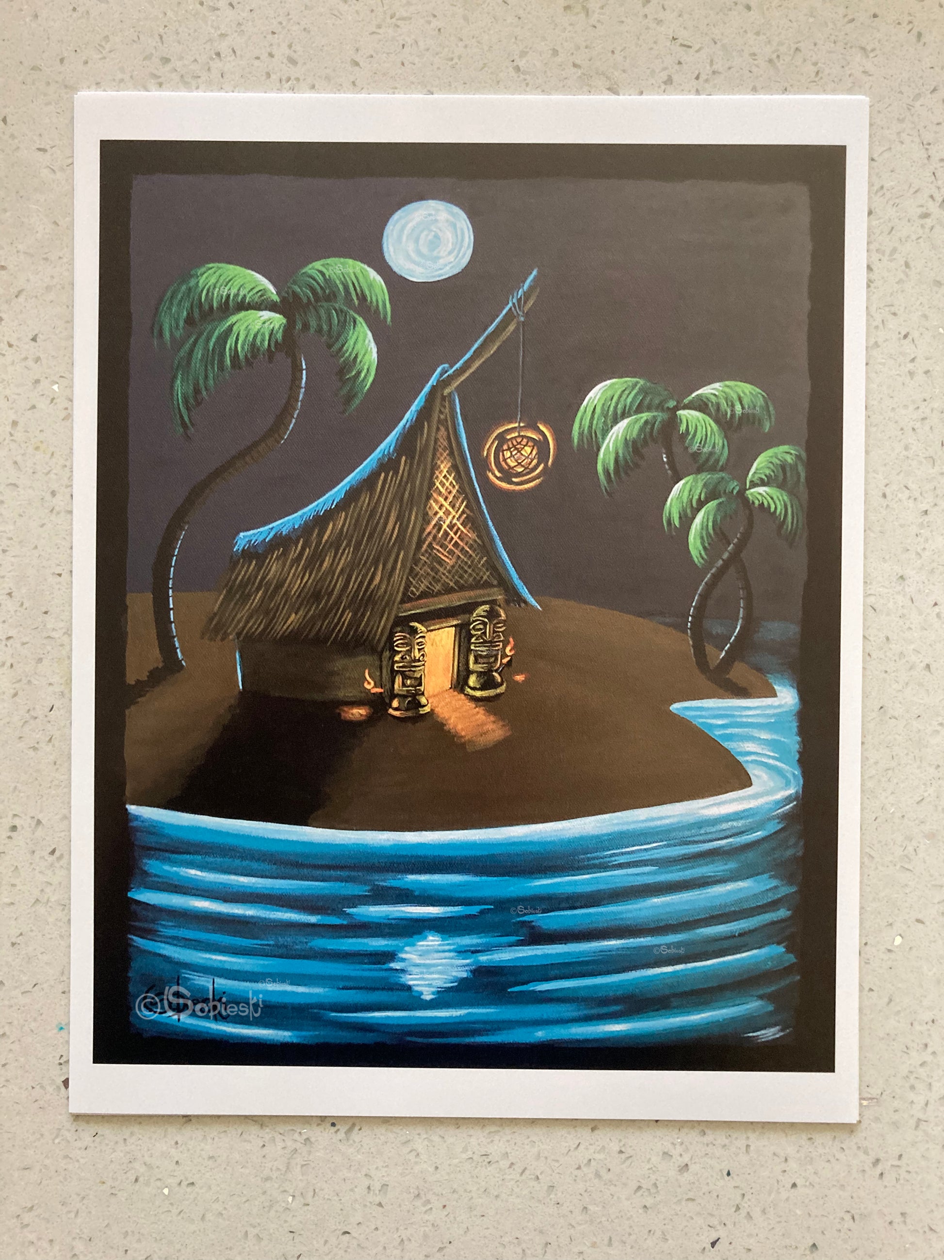 The image itself is 8x10" printed on an 8.5x11" sheet of Canon Pro Luster Photo paper with a Canon Pro-300. This print does NOT come with a mat. Additional trimming may be required. The signature in the lower corner is from the painting itself. Additionally it is titled, catalogued, signed, and dated on the reverse.