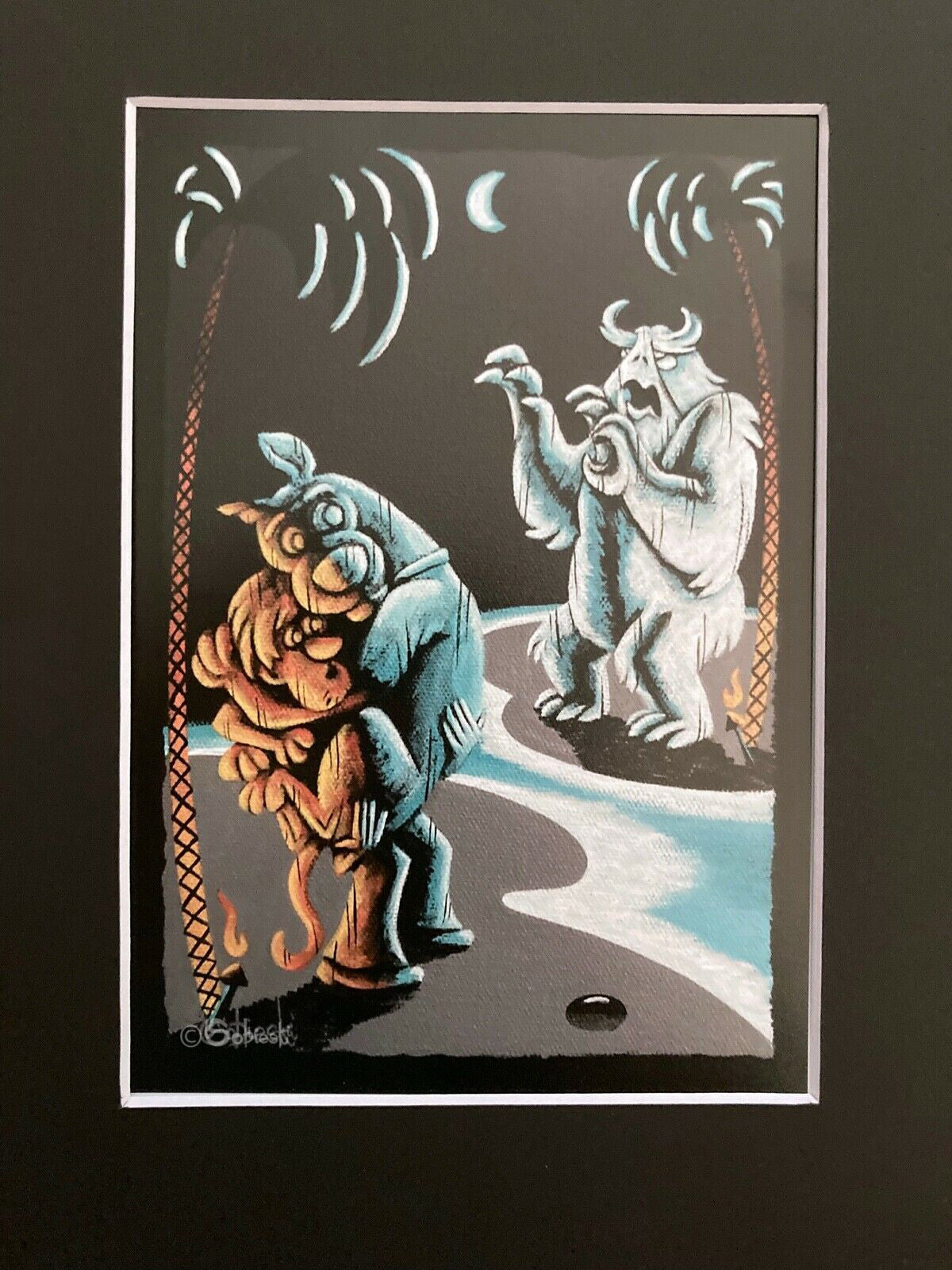 The image itself is 4.5x6.5" and is printed on Moab lasal (exhibition luster 300) paper with an Epson printer (Stylus Pro 3880) using Ultrachrome K3 inks.  It comes in a black 8" x 10" mat with an image opening of 4.5" x 6.5" making it ready to go into your favourite frame. The signature in the lower corner is from the painting itself. Additionally it is titled, catalogued, signed, and dated on the reverse.
