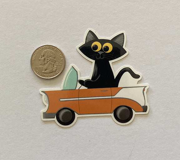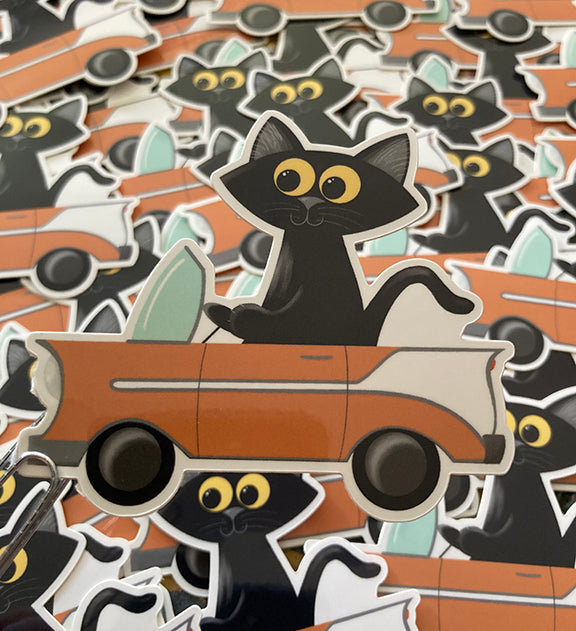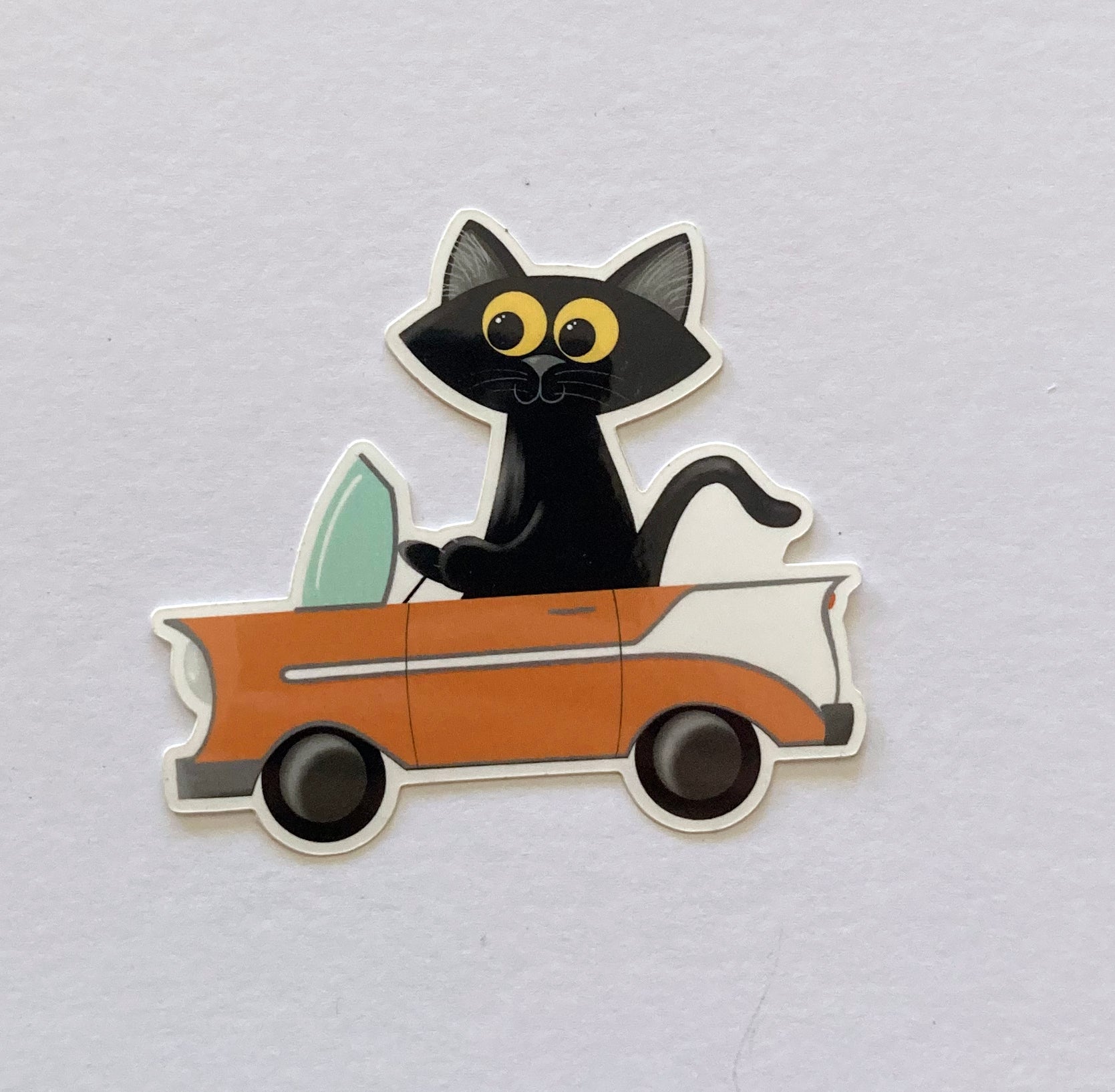 This lil' fella just loves cruisin' around! He's the kind of Sunday driver I don't mind bein' stuck behind! Just one from my collection of black kitty stickers. Available individually or part of my Here Kitty Kitty Sticker Pack while supplies last.