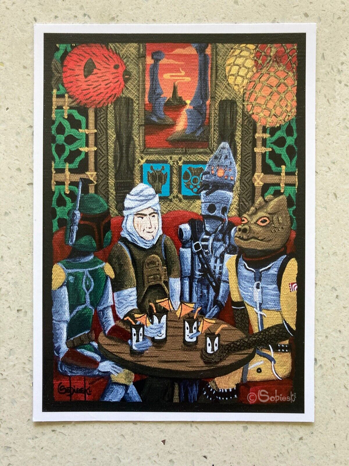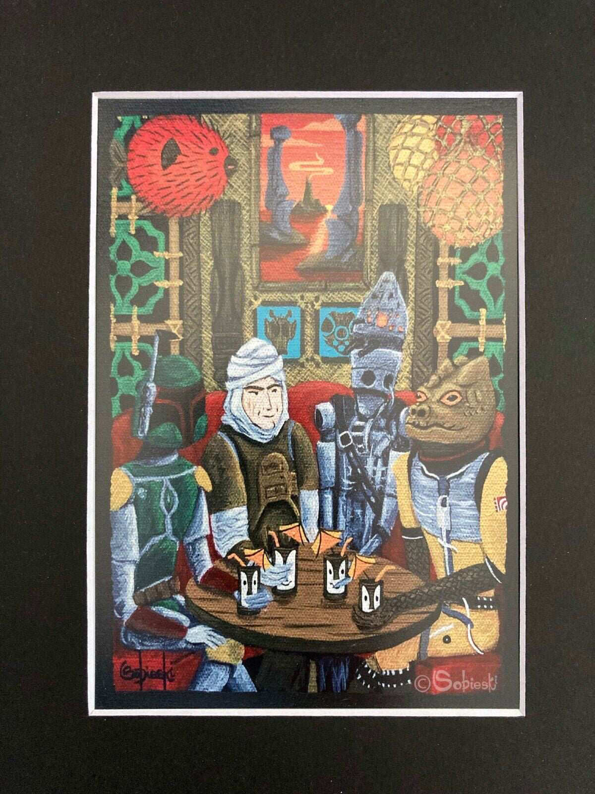 The first picture is the image of the original painting from which this print was produced. The second image is a close-up example of the print you will receive in the mat.  The third picture is an example of the print you will receive in the mat.  The fourth picture is an example of the print you will receive.