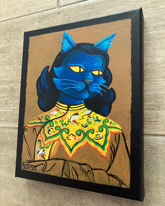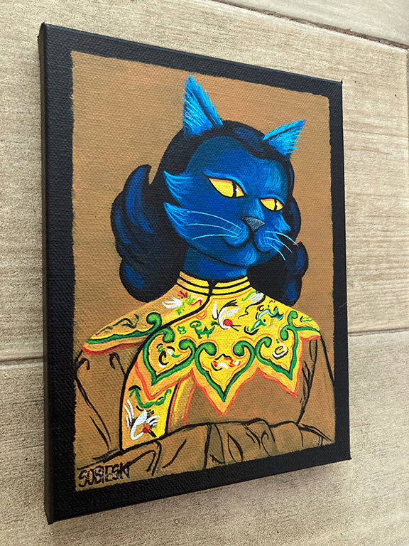 The painting measures 6x8" and is painted on a gallery wrapped canvas, painted on all sides so there's no need for a frame.