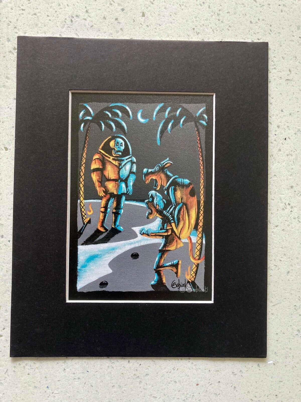 The first picture is the image of the original painting from which this print was produced. The second image is a close-up example of the print you will receive in the mat.  The third picture is an example of the print you will receive in the mat.  The fourth picture is an example of the print you will receive.